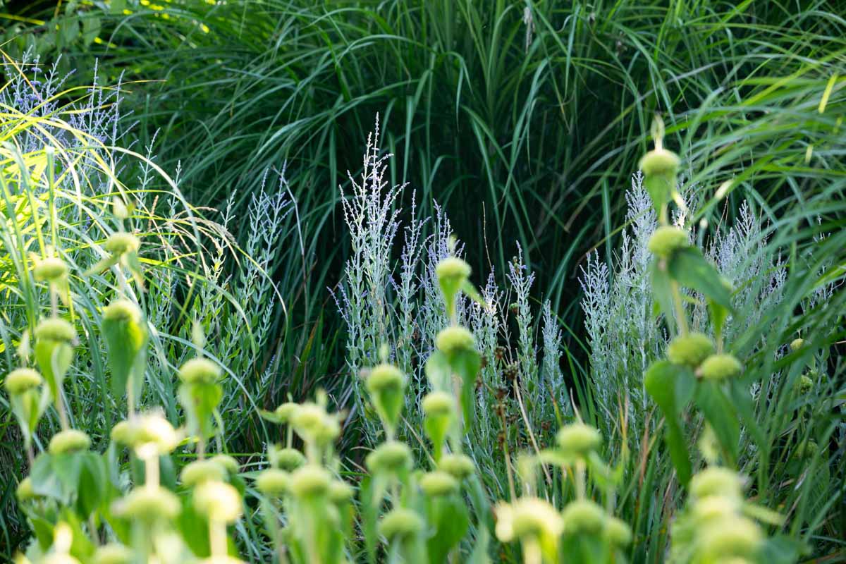 A unique Arts & Crafts style house just a stone’s throw from the coast, with a garden designed by Helen Elks-Smith for outdoor living. The palette of plants is at home in the coastal environment: structural Phormiums and Echiums, grasses that dance in the softest breeze, dusky blue tones and soft yellows to reference the nearby beach. The garden room echoes the unique curved dormers in the roof structure of the house, and it divides the formally planted garden from a wilder area of the garden which has been planted with a James Hitchmough seed mix. This is a small/medium size private garden, less than 1/2 acre, which does not open to the public.
